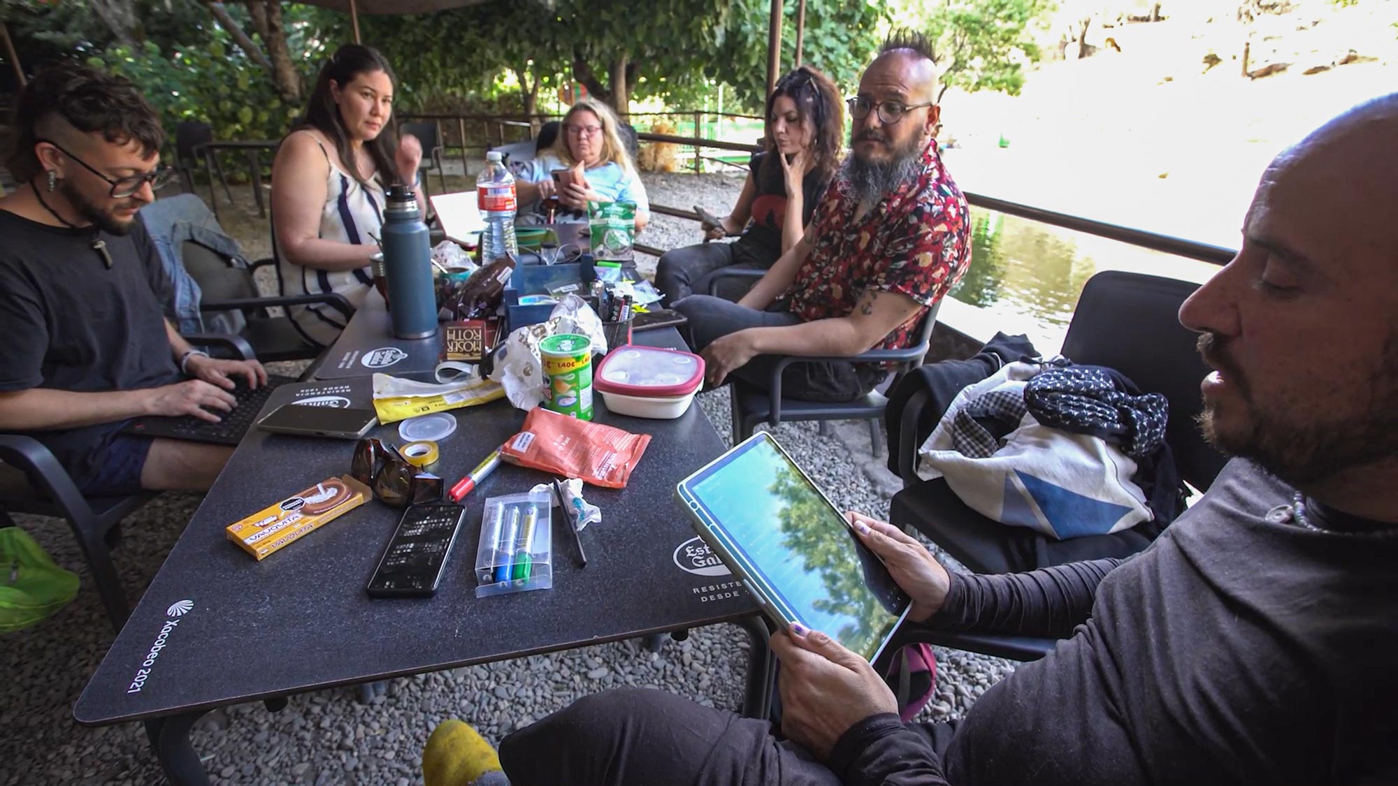 You’ll have ample time in beautiful locations for your own projects but also recreation: hiking, yoga, callisthenics, river swims, coaching/healing, great local food and drinks, plus exploring the beautiful Ambroz Valley. Get geeky with tech, get freaky with tarot, get squeaky with karaoke. Take a siesta, a walk or a cold swim. Plan side quests. You'll be spoilt for choice.